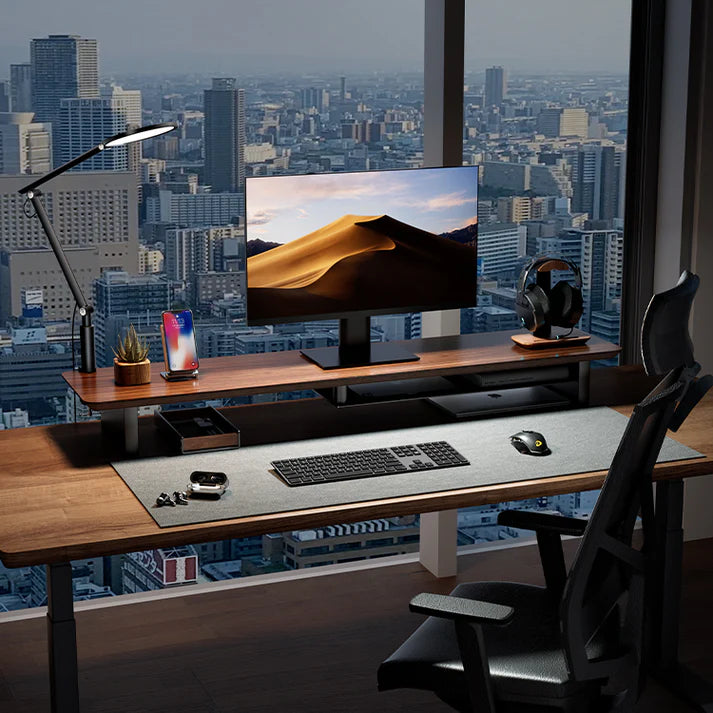 Enhance your gaming setup with our sturdy wooden dual monitor stand, offering ergonomic comfort and extra storage. It keeps your desk organized and reduces strain during long gaming sessions.